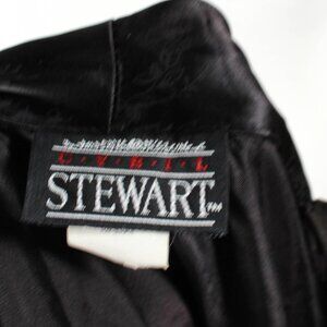 Vintage 80s black sateen floral tuxedo-style jacket perfect piece for anyone looking to add a trad goth or sophisticated vintage flair. Its elegant floral pattern, tailored fit, it can be worn casually over a dress or w/pants, or dressed up for a formal event. Jacket features a distinctive pleated tuxedo-style back with button detailing, adding an extra layer of charm to its design.