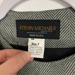Vintage 1980s Black White Asymmetrical Single Button Blazer Jacket Size 7