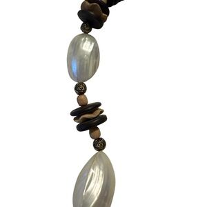 Vintage 1980s Black Wood Disc and Mother of Pearl Necklace, Boho, Eclectic Beach