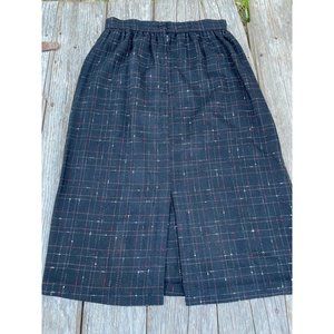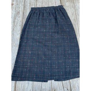 Vintage 1980s Black abstract Plaid Wool Blend Skirt