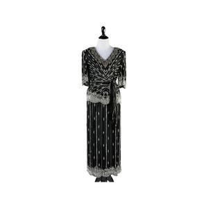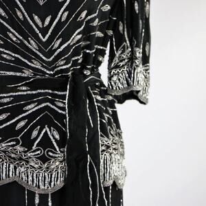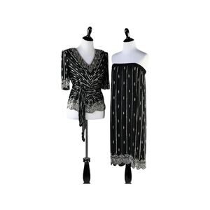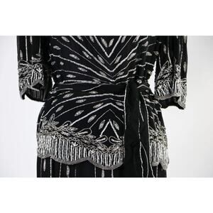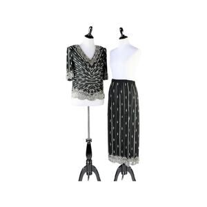 Vintage 1980s Black and Silver Sequin Beaded Top and Skirt Judith Ann Medium