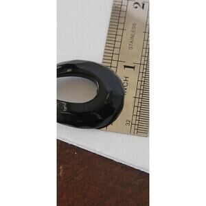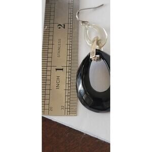 These vintage dangle earrings from the 1980s showcase a striking combination of black and white elements, creating a timeless, chic look. The earrings feature an elegant black oval drop, made from high-quality resin, which is lightweight and comfortable to wear. Attached to the black drop is a smaller white resin piece, adding a contrasting yet harmonious touch to the design.