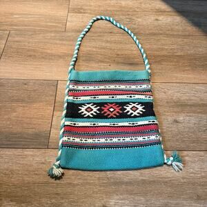 Vintage 1980's Blanket Purse Drope Blue Made in Greece Hand Spun Rayon/cotton
