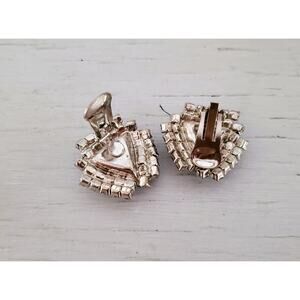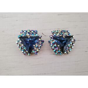 Vintage 1980s Blue AB Rhinestone Clip On Earrings