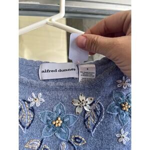 Vintage 1980's Blue Alfred Dunner Embroidered Short Sleeve Top Size Small