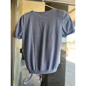 vintage 1980's heather blue short sleeve sweater top with floral embroidery and beading along the neckline. There are no major stains, holes, or tears. The tag says size small. Please check measurements before purchasing!