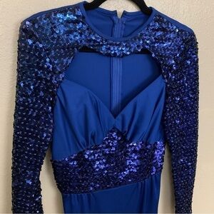 Special Features/Details: Sequined across neckline, sleeves and waist, sweetheart neckline, zipper closure, side slit