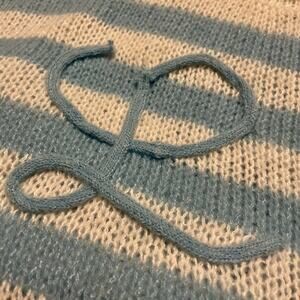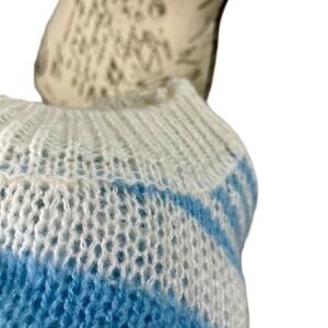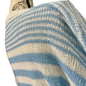 Vintage 1980s Blue & White Striped Handmade Knit Mockneck Sweater Oversized M/L