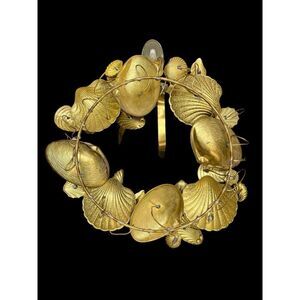 This vintage 1980s Brass Dresden/Petite Choses Seashell Wreath is a rare find, measuring 11 inches in height and width. It is in great condition. This intricate piece by Petite Choses showcases a unique design with seashells and gold color scheme making it a standout addition to any space with a touch of nostalgia from the 1980s.