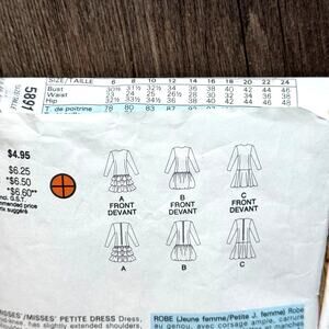 Vintage 1980s Butterick 5891 Sewing Pattern Size XS-S Womens Drop Waist Midi Dress COMPLETE
