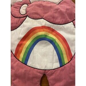 Vintage, 1980s, Cheer Bear Care Bears hand stitched, wall hanging. Probably made from a 1984 Soft Stitches kit (example shown in photos) but this bear doesn't come with a heart shape balloon nor were the hands stitched to accommodate the ribbon. Item is lightly stuffed with batting and stitched closed. Black top stitching to make the character pop. There is one spot near the foot which I have not attempted to clean. The color has faded some due to its age. Approximate measurements shown in photos. Nostalgic, Care Bears collectible in good pre-owned, vintage condition with some signs of wear.