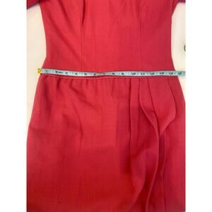 CH by Carolina Herrera for Bergdorf Goodman pink vintage 1980’s wool midi sheath dress. Long sleeve. Shoulder pads. Hidden back zipper closure w/ hook & eye clasp. Tulip skirt. Round neck. Lined.