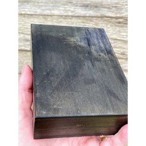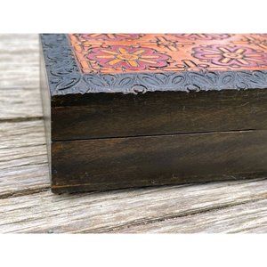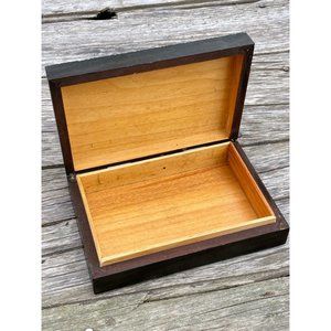 Here for your consideration is a nice vintage carved wood trinket/jewelry box. It measures 6x4.5x1.5" . It has some light scuffs but it is in very good vintage condition.