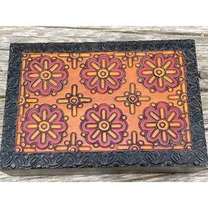 Vintage 1980s Carved Wood Medallions Trinket jewelry box Boho