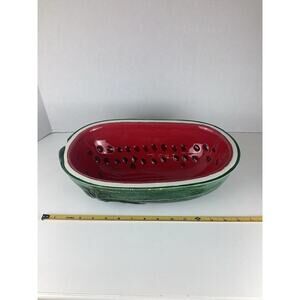 Vintage 1980’s Ceramic Hand Painted Summer Watermelon Oval Serving Bowl 13”