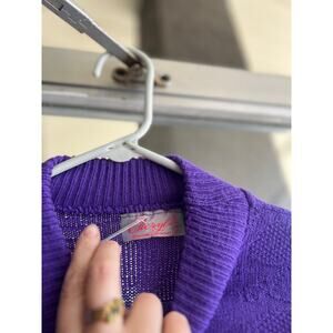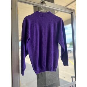 1980's Purple knit mock neck sweater. There is no size on the tag, but it fits a size medium. There are no major stains, holes, or tears.