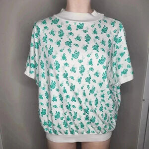 Vintage 1980's Chicory Womens Floral Green and White Top Size Large