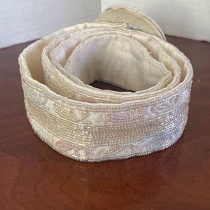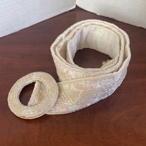 Vintage 1980s Christian Dior "Ceintures" White Beaded Belt Women One Size