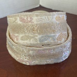 Vintage 1980s Christian Dior "Ceintures" White Cream Fabric and Beaded Belt