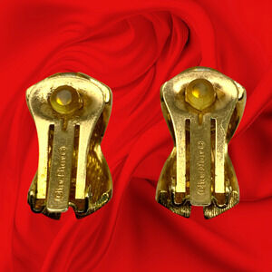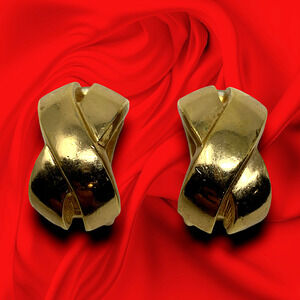 Vintage 1980's Christian Dior Gold Tone X Clip On Earrings Couture Runway Chunky