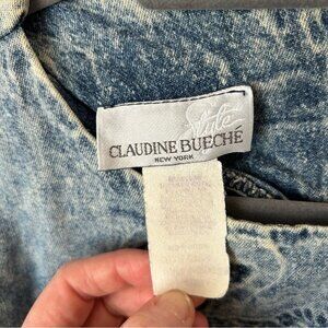 Vintage 1980s Claudine Bueche Acid Wash Denim Midi 3/4 Sleeve Dress Size Medium