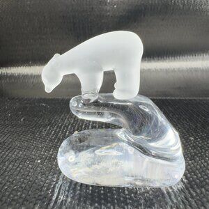 Vintage 1980s Clear Frosted Glass Bear on a Wave Figurine Small Glass Decor VTG