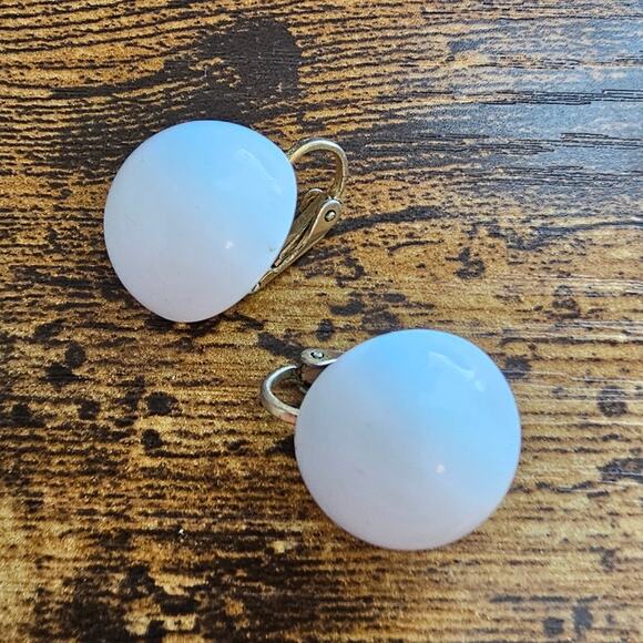 Vintage 1980s Clip On Stud Earrings Large Round White Plastic Retro
