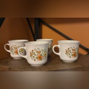 Vintage 1980s Corelle Indian Summer Set of 4 Coffee Mugs Tea Cups Orange Green