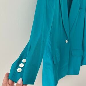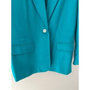 Vintage 1980s David Brooke Teal Rayon & Silk One Button Blazer Size 12 JL