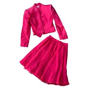 Vintage 1980's David Hayes Saks Fifth Avenue 100% Silk 2 Piece Blazer Skirt Set