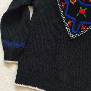 Vintage 1980s Design Zone Knit Sweater Roses Floral Mock Neck Black Size Small