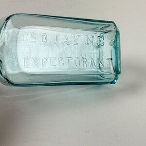 vintage bottle, vintage decor, 1980s collectible, blue glass, Dr D Jayne's, expectorant bottle, embossed glass, half-size bottle, home decor, antique collection, glass bottle, collectible glass, unique bottle