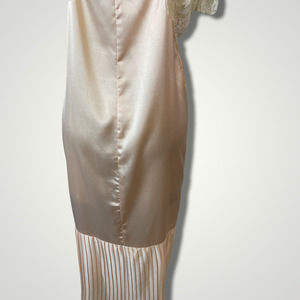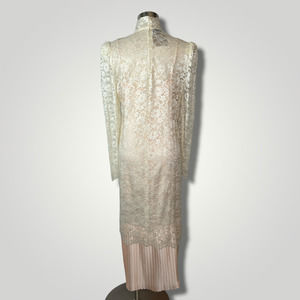 Vintage 1980s Dress Scott McClintock Cream Lace Overlay Pink Slip Pleated B1011