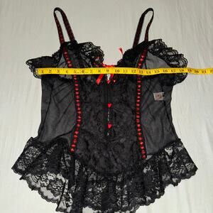 Vintage 1980s Duet Black Lace Red Heart Lingerie Cami Women's Plus 1x Victorian