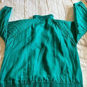 Vintage 1980’s EVR 100% Silk Bomber Jacket, Teal w/ Gold Beads, Lined, Size XL