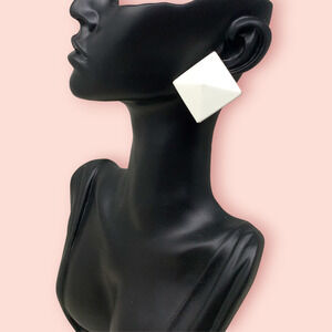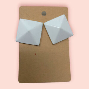 Vintage 1980s Earrings White Metal Pyramids Oversized Pierced Unsigned New Wave