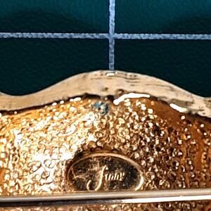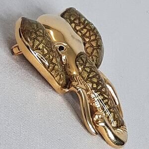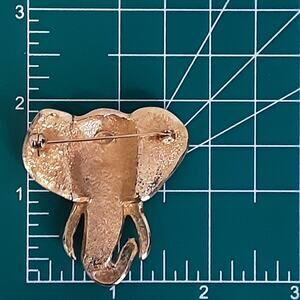 Vintage 1980s Elephant Head Brooch Heavy Gold Tone Metal Brown Green Enamel