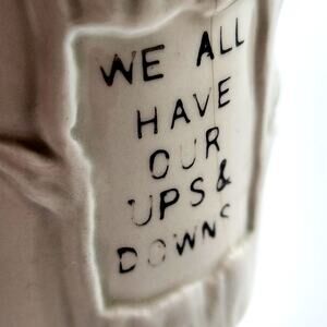 Owl mug, owl mom cup, vintage ceramic mug, novelty coffee cup, 3D owl handle mug, owl lover gift, Mother’s Day owl mug, rustic woodland decor, “Ups and Downs” mug, collectible owl mug, cottagecore, rural, rustic