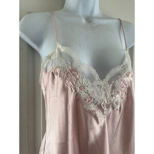Vintage 1980's Etienne Peignoir Set Nightgown (S) and Robe (S) Pink With Beige Floral Lace Mini Pearl Seed Beading