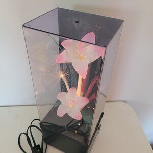 Vintage 1980's FIBER OPTIC Flower Light w/ Wind Up Music Box WORKS