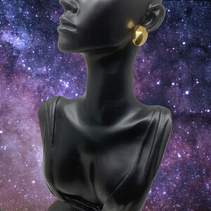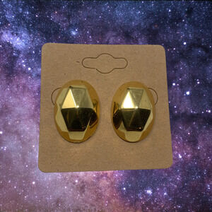 Vintage 1980's Faceted Gold Tone Oval Earrings Pierced New Wave Punk Carded