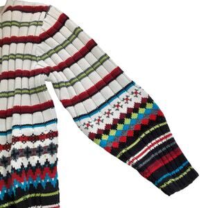 Vintage 1980s Fair Isle Sweater Balloon Sleeve Multi Striped Nordic Sz S Grandpa