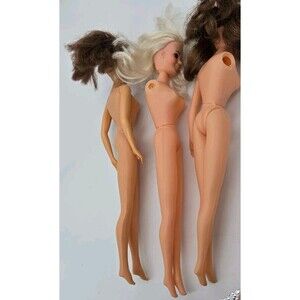 This lot includes three 11 1/2 inch fashion dolls from the 1980s? Possibly 70s? They are Barbie clones made of plastic and do not come with packaging. They are lightweight, hollow like. Not solid.