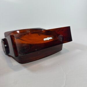 Chic 1980s square vanity mirror in faux tortoiseshell plastic. Swivels smoothly with dual sides, one regular, one magnifying, for flawless makeup or grooming. A stylish retro piece for your bathroom or vanity. Lightweight yet sturdy with a timeless look. Harder to find in this classic condition. Display or daily use ready!
