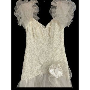 Vintage 1980s Flirtations White Prom Dress Drop Waist Sequin Puffy Sleeve Tulle