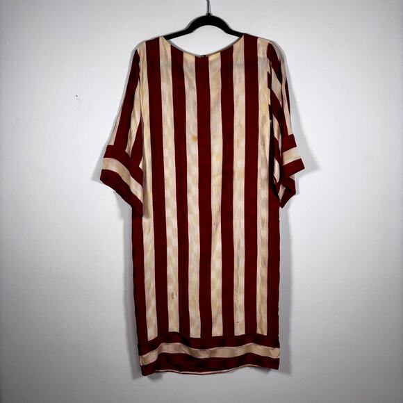 Vintage 1980s Flora Kung Silk Red White Striped Dress Damask Wounded Bird AS IS