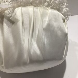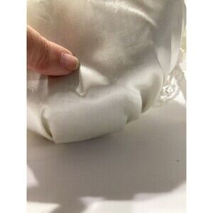 Lovely little flower basket for flower girl. Moire taffeta, with handmade roses on each side. Pearls on handle. In good condition for age