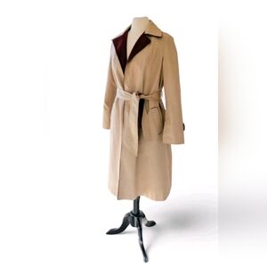 This vintage 1980s Etienne Aigner trench coat in tan and oxblood is a truly unique piece for any fashion enthusiast and the epitome of vintage "quiet luxury" aesthetic...