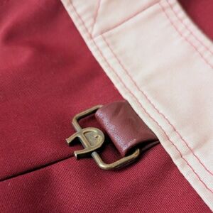 Featuring the signature "Oxblood' burgundy Etienne Aigner is known for, coat features a fully reversible design that allows a switch up for at least 6 different looks and has edge/ detail lining of real leather. Adds a touch of vintage sophistication to any look this fall. Size 8/ small.