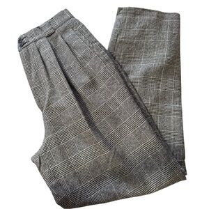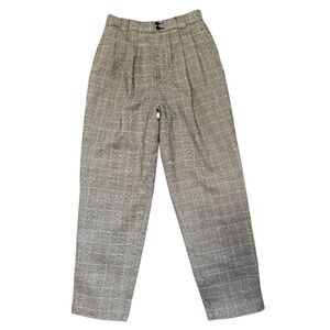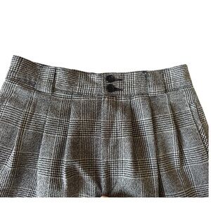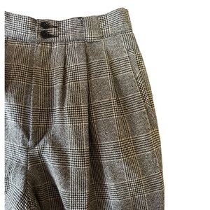 Vintage Giorgio Sant’ Angelo Glen check plaid trousers. These high rise pleated pants with tapered legs can be dressed up, dressed down, and styled for literally any occasion! Menswear styling. Button/zipper closure. Belt tab loops front and back. Two faux front side pockets, one functional rear buttoned pocket. Completely lined. Excellent condition.